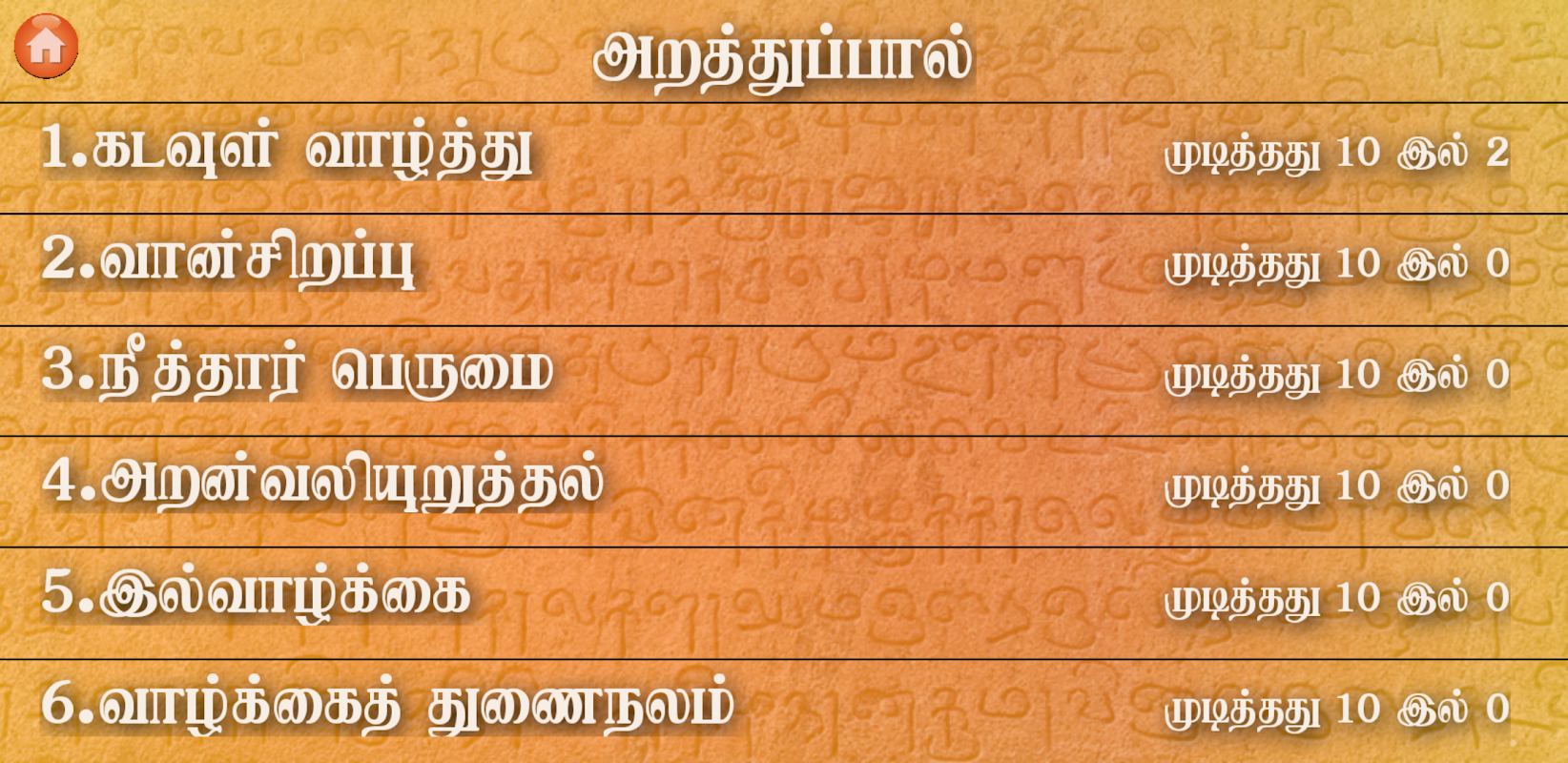 Temukan Thirukkural dari tujuh kata acak. Seret dan lepas kata ke posisi yang benar dan gunakan tombol centang untuk memverifikasi penempatannya. Jika kata ditampilkan dalam warna hijau, maka posisinya benar. Jika kata ditampilkan dengan warna merah, maka posisinya salah.