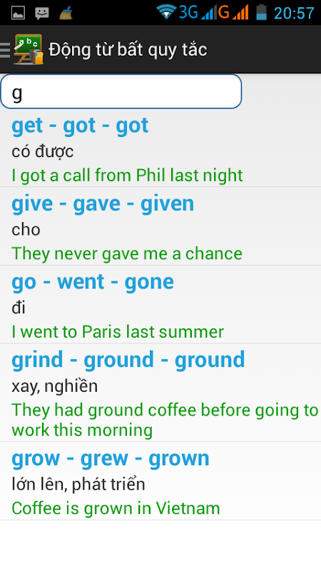 - Bảng động từ bất quy tắc,có ví dụ cho mỗi từ