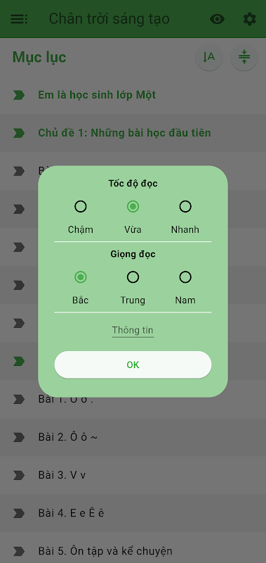 Konten dalam aplikasi ini mengikuti buku teks Vietnam 1 - Creative Horizon dari Rumah Penerbitan Pendidikan Vietnam.