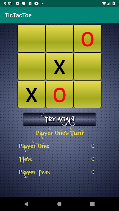 - Two Player : Play Tic Tac Toe with your friend on same Android device. (Player One vs Player Two)