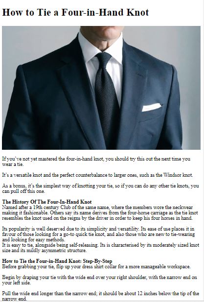 Kesesuaian: Simpul Setengah Windsor memberikan keseimbangan antara keanggunan dan kesederhanaan, sehingga cocok untuk acara formal dan semi formal.