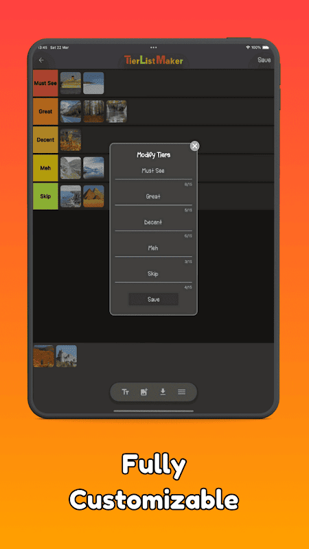 • Tingkatan yang Dapat Diedit: 🔧 Ubah nama, susun ulang, tambahkan, atau hapus tingkatan untuk mengatur peringkat Anda persis seperti yang Anda bayangkan. Jadikan setiap daftar tingkatan unik milik Anda.