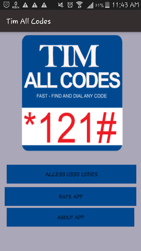 - No need to Memorize any Tim Code, you can check and dial codes from the app. The contains all Tim USSD codes.