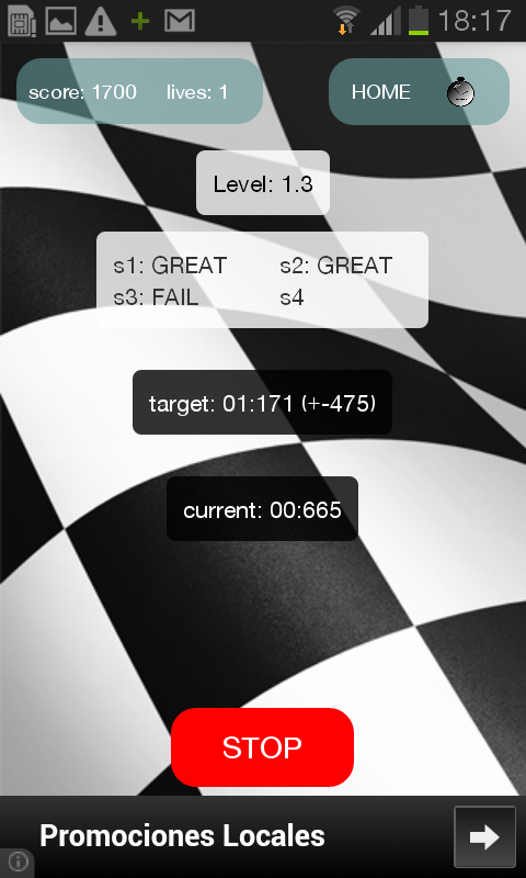 TimeRace adalah aplikasi tempat Anda dapat membuktikan kecepatan, keterampilan, dan refleks Anda. Ini pada dasarnya terdiri dari menghentikan waktu dalam target variabel. Levelnya semakin meningkatkan kesulitan.