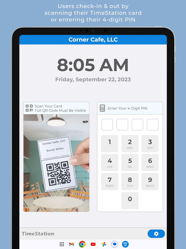 Dengan menggunakan teknologi Fast-Scan kami, karyawan dapat memeriksa Masuk & Keluar dalam waktu kurang dari satu detik, dan karena TimeStation berjalan di cloud, tidak ada perangkat lunak atau server yang harus dipelihara. Manajer dapat melihat siapa yang hadir dan menjalankan laporan waktu dan kehadiran kapan saja, di mana saja.