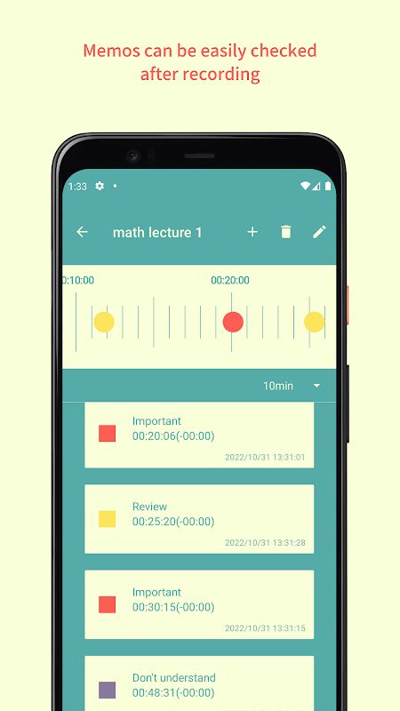 Dengan menggunakan aplikasi memo ini, mudah untuk mencatat waktu dari poin-poin penting yang disebutkan di atas,