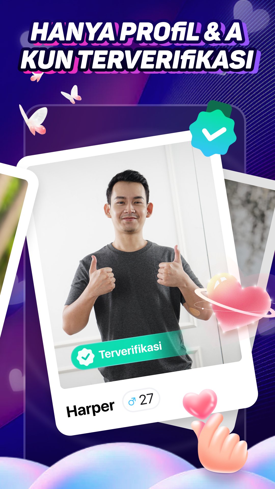【Verifikasi Orang Sungguhan】 Jangan takut lagi! Verifikasi orang sungguhan dapat memastikan Anda bertemu orang-orang dengan profil 100% nyata di semua jenis panggilan dan pesan.