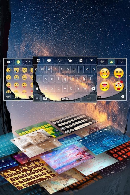 Berbagai emotikon menyenangkan disediakan. Seperti \ (^ o ^) / ~ & (^ _ ^). Lebih dari 100+ emotikon. Jadikan obrolan Anda lebih menarik. Keyboard emoji yang menyenangkan!