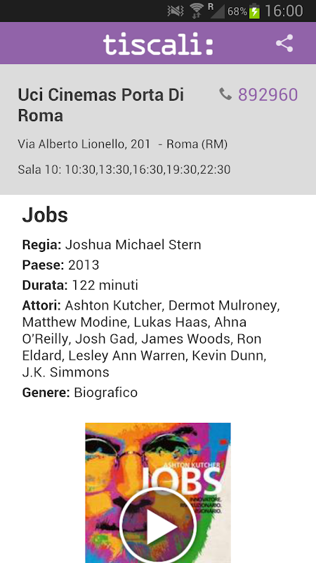 Avrai inoltre a disposizione i servizi Tiscali: la Mail, il Meteo e il Trovacinema, con il quale puoi trovare i film nei cinema della tua città e invitare i tuoi amici a vederli con te!