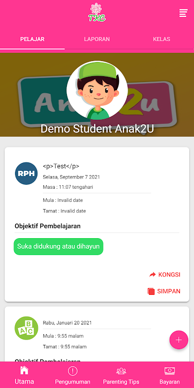 • Laporan Harian: Catat tidur siang, makan, kamar mandi, dan aktivitas lainnya. Orang tua mendapatkan feed dan ringkasan harian. Laporan lembar harian sangat mudah dengan Anak2U.