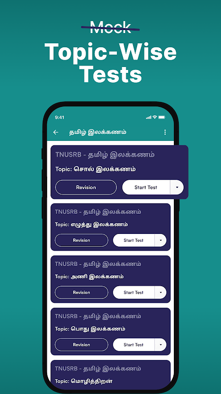 Aplikasi ini mencakup tes berdasarkan topik yang disesuaikan untuk calon PSC Tamil Nadu dan TNSURB. Dapatkan umpan balik waktu nyata tentang kinerja Anda dan aplikasi ini akan menjadi aplikasi TNPSC Grup 4 terbaik Anda di Tamil 2025, aplikasi TNPSC Grup 1 di Tamil, aplikasi TNPSC Grup 2 di Tamil, aplikasi urusan terkini TNPSC Tamil, aplikasi TNPSC SI Tamil 2025, aplikasi persiapan ujian TNPSC di Tamil, aplikasi TNUSRB PC Tamil 2025 & aplikasi TNUSRB SI Tamil 2025
