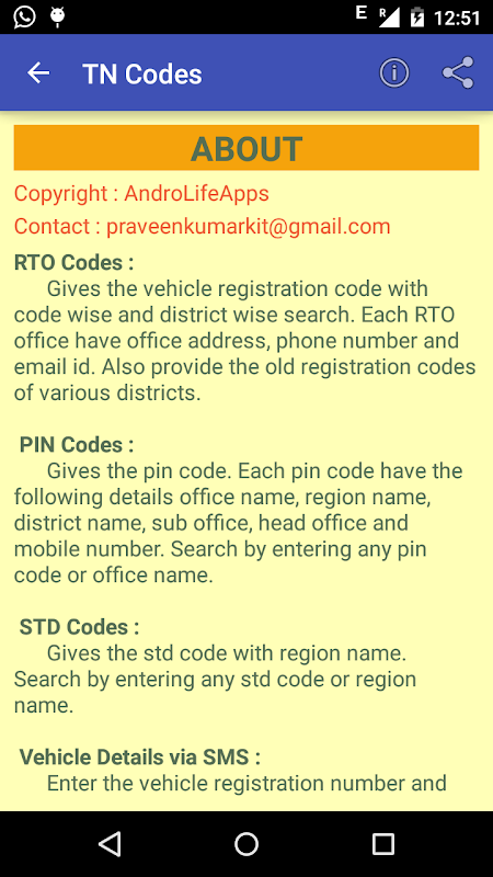 Gives the vehicle codes, pin codes and std codes of Tamilnadu in offline.