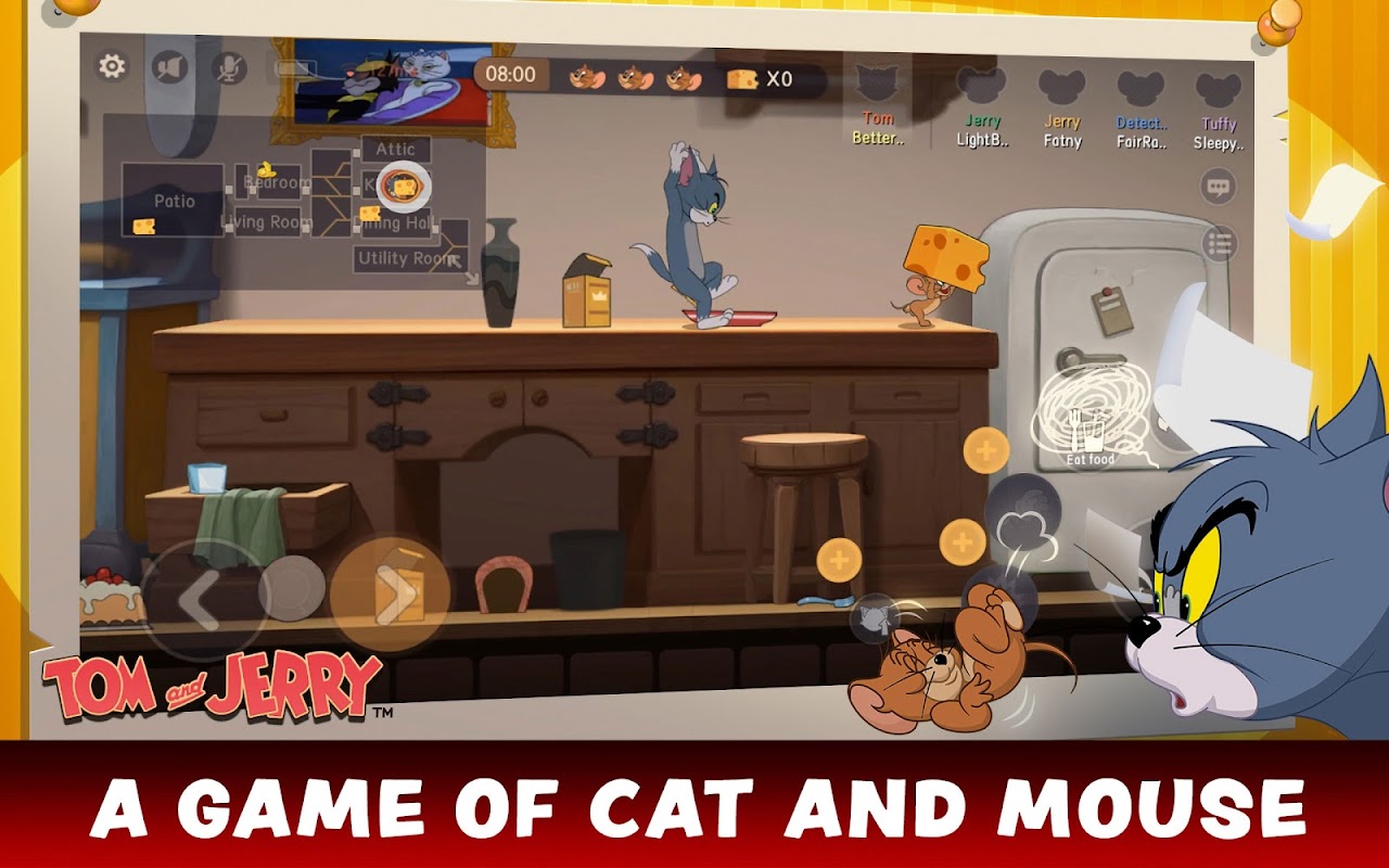 Kamu bisa bermain sebagai kucing atau tikus. Berubah menjadi Jerry nakal, kumpulkan keju, dan cobalah untuk mengecoh Tom. Atau mainkan Tom si kucing yang licik melawan sekelompok tikus nakal, dalam pertempuran 4 vs 1 yang cerdas dan licik!