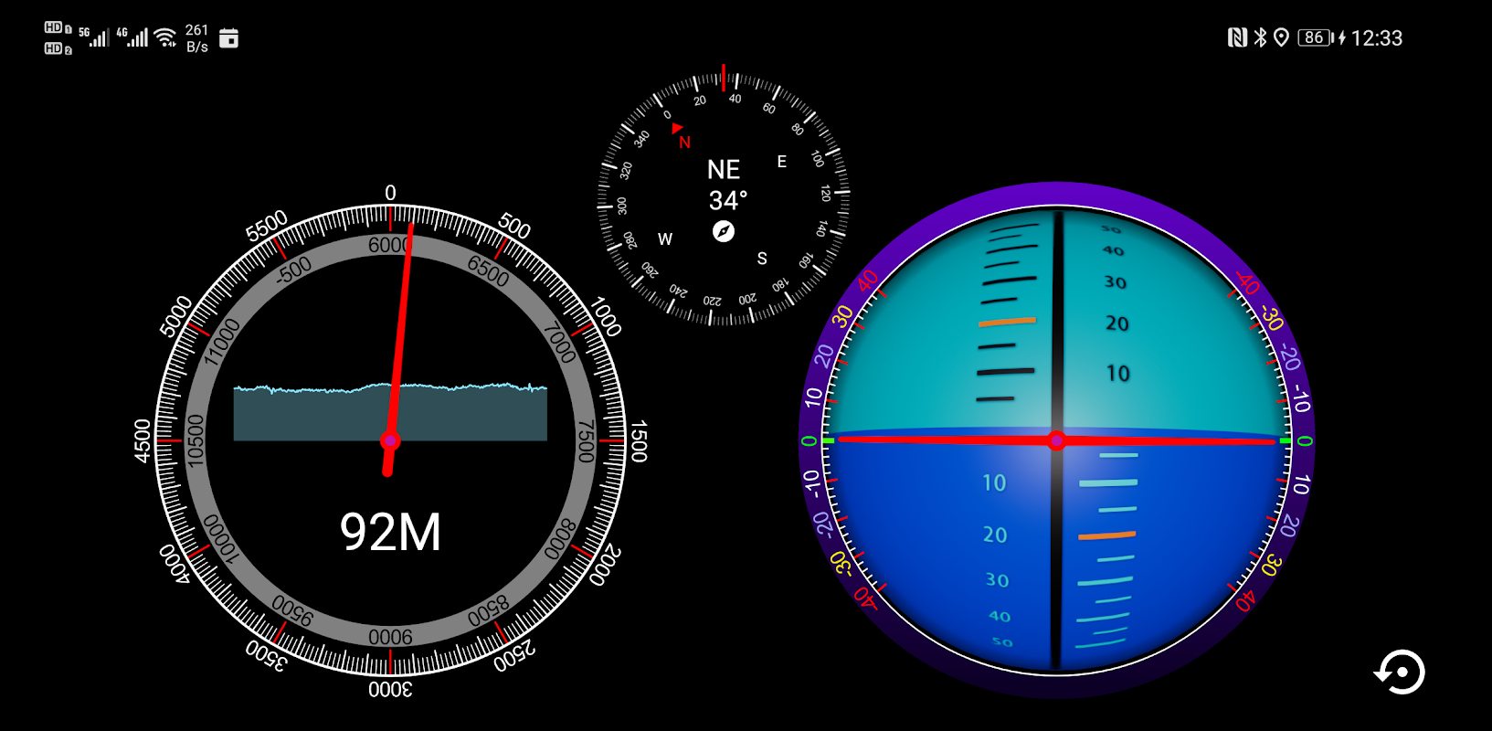 Altimeter, Inclinometer, Kompas