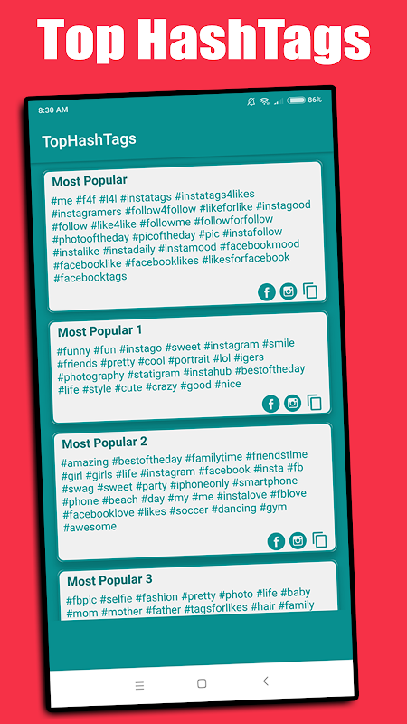 You may get more likes and followers using this hashtags app in your photos on Instagram or Facebook