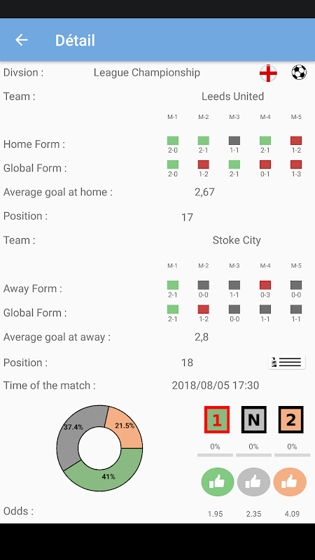 - Each user will be able to give his match prediction on each game and see the trend of the match prediction according to the Internet users.