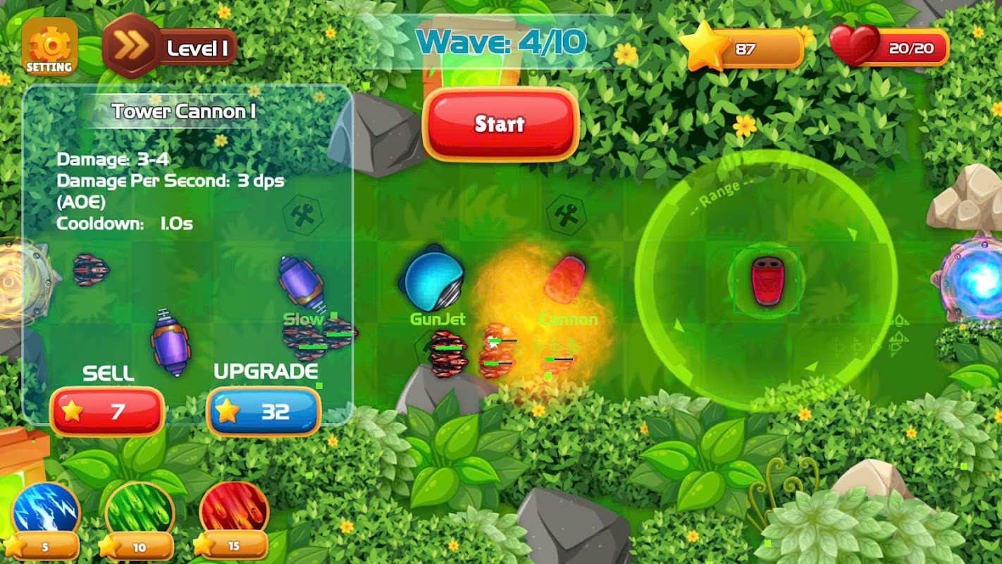 Saat pemain maju ke level yang lebih tinggi, musuh menjadi lebih kuat dan lebih banyak, sehingga membutuhkan peningkatan menara dan strategi secara terus-menerus.