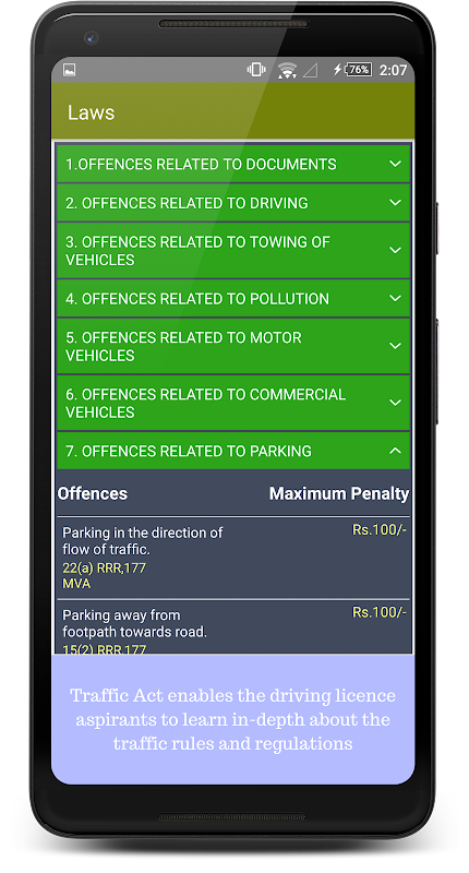 • Traffic Act is a totally free app, developed with a vision to educate users to learn more about the traffic rules and regulations in India and obtain their driving licence without giving multiple attempts.