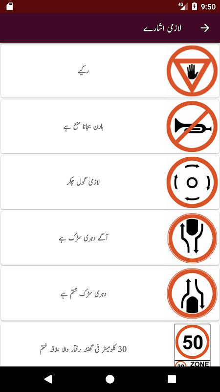 Aplikasi terbaik untuk mempelajari Tanda Lalu Lintas dalam bahasa Inggris dan Urdu untuk Pakistan