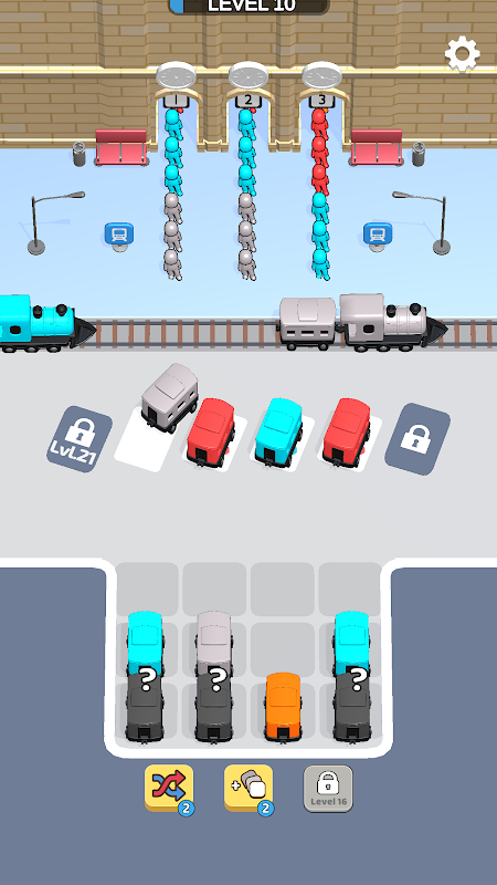 Cobalah untuk mencocokkan warna kereta dan penumpang