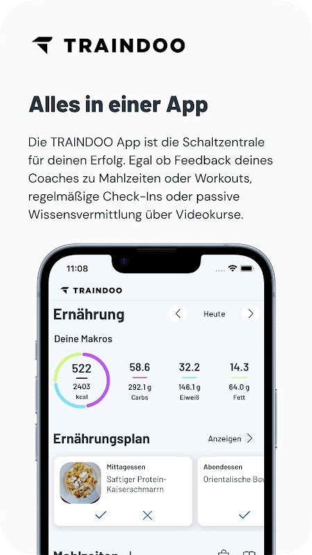 Dengan Traindoo, Anda dan pelatih Anda memiliki alat terbaik untuk mengoptimalkan pelatihan Anda. Selain performa latihan Anda, data kesehatan dan kebiasaan dicatat melalui check-in harian dan mingguan. Semua data mengalir ke alat analisis ilmu olahraga. Dari sini, pelatih Anda memperoleh wawasan untuk pemrograman optimal proses pelatihan Anda selanjutnya. Dengan kemampuan mengunggah foto dan video di aplikasi, fungsi komentar untuk latihan individu, dan fungsi obrolan, Traindoo menawarkan pengalaman pelatihan online yang unik.