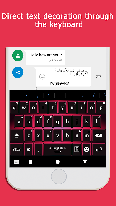 Juga Keyboard Profesional Menulis ornamen dari mana Anda dapat ornamen Anda menulis berbagai jenis selesai dan dekorasi .. langsung menggunakan keyboard tanpa harus copy dan paste dekorasi akan muncul saat Anda mengetik langsung dan dapat beralih dengan mudah antara motif dan menulis parser bahasa Inggris dengan kemampuan untuk mengaktifkan dan menonaktifkan pola dan menulis tanpa itu.