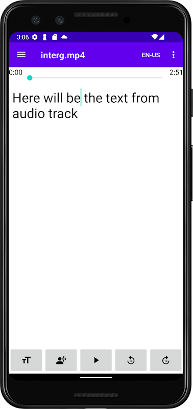 Aplikasi ini menggunakan pengenal ucapan Android untuk mentranskripsikan suara ke teks dari trek audio dalam berkas audio atau video.