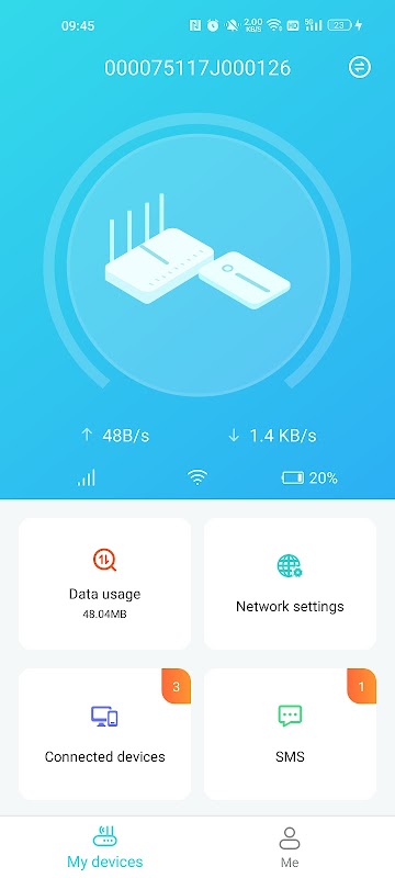 1. Manajemen perangkat: bebas melihat informasi seperti tingkat baterai perangkat MBB, perangkat Internet yang terhubung, dan kecepatan Internet.