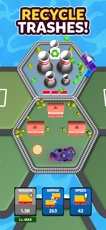Bergabunglah dengan Trash Train! Kumpulkan, daur ulang, dapatkan hadiah dalam petualangan bersih-bersih kota ini!