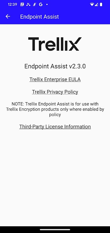 This app is used by those who use our encryption products "Trellix Drive encryption" or "Trellix File and Removal media Protection".