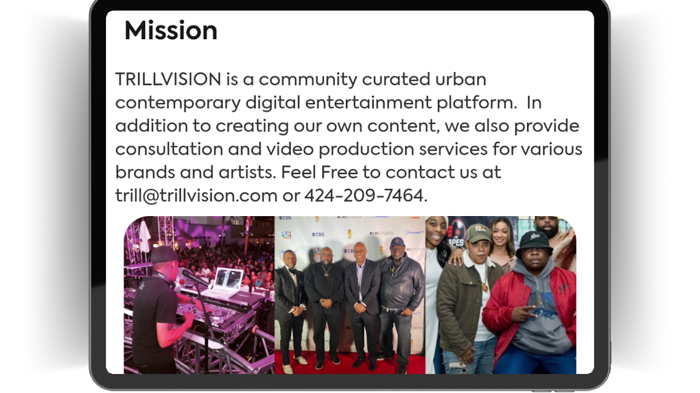 Dengan fokus pada media kontemporer perkotaan, kesehatan emosional, dan penyampaian cerita yang inklusif, merek TRILLVISION telah menghasilkan konten pemenang penghargaan yang menantang pembuatan film konvensional, sekaligus merangkul artis baru dan pengalaman baru. Dari layanan streaming besar dan festival film hingga acara streaming langsung dan podcast, konten inspiratif kami gratis dan sesuai permintaan. Selain hiburan asli kami, aplikasi TRILLVISION juga menyusun panduan streaming film dan televisi untuk membantu pengguna menemukan konten berkualitas di semua platform streaming utama. Unduh aplikasinya dan temukan siapa dan apa yang selanjutnya di dunia konten digital yang beragam dan luas.