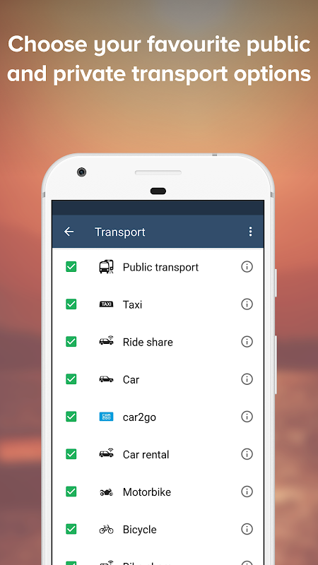 Personalisasi perjalanan Anda dengan memilih preferensi rute Anda. Tidak pernah terlambat lagi dengan syncing TripGo dengan agenda Anda dan mendapatkan waktu keberangkatan yang tepat.