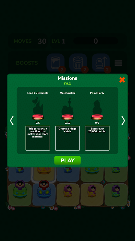 The goal of Trizzle Matryoshka game free is to slide rows or columns of nesting dolls to line up three of the same color and size. Each match grows the Trizzle dolls bigger and boosts up your score in this wholly original match-3 game. But the higher your level the more difficult the game gets, so you'll need to make each of your moves impactful!