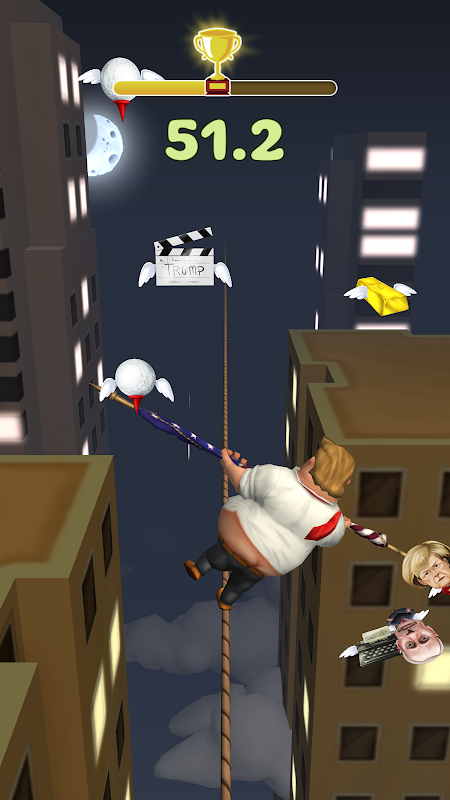 Goal of the game is to bring the new President Trump to success! Work your way as far as possible, keeping the balance. Along the way, the obstacles encountered will outweigh you. Balance your character and collect bonuses. Be careful, Trump does not fogive mistakes! Not all the factors are negative, and not all have the same weight. Once one of the sides gets heavier, you will not be able to stand on the rope. Just like it is in life. The most stubborn advances the furthest. Good luck!