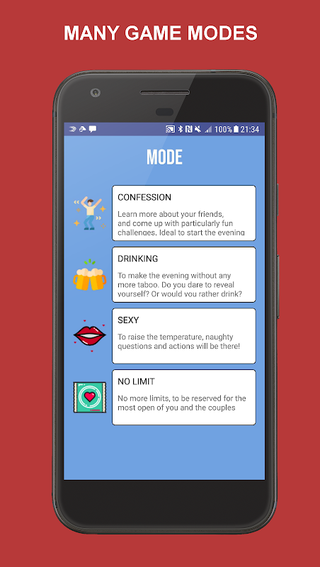 Our dirty truth or dare game is divided into several categories to match all desired moods