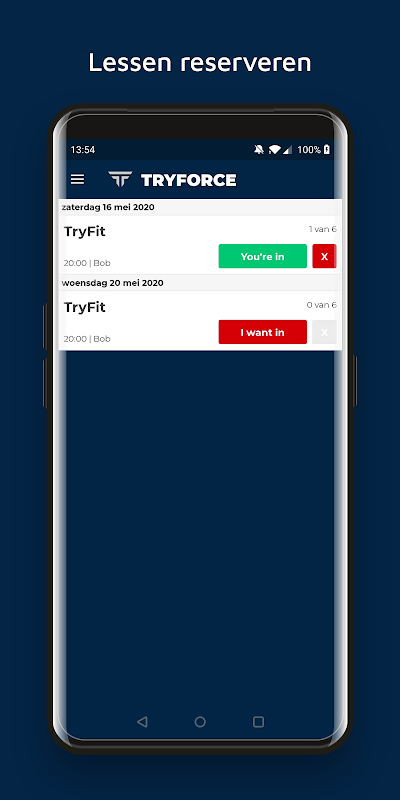 Vanaf nu is het mogelijk om vooraf je plek in de TryForce les te reserveren.