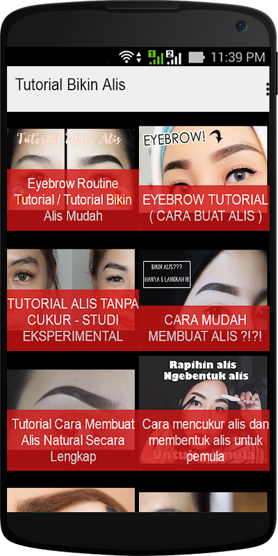 Dalam aplikasi ini terdapat banyak video tutorial bikin alis terbaru. Karena tutorialnya dalam bentuk video, sehingga Anda akan mudah mempraktekannya. Anda akan dipandu langkah demi langka dalam membuat alis yang cantik.