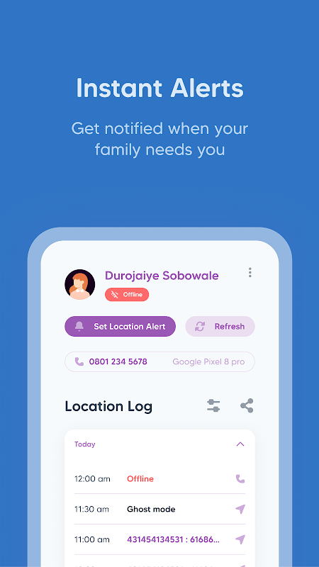 Jaga keamanan keluarga Anda dengan berbagi lokasi real-time dan peringatan SOS instan.