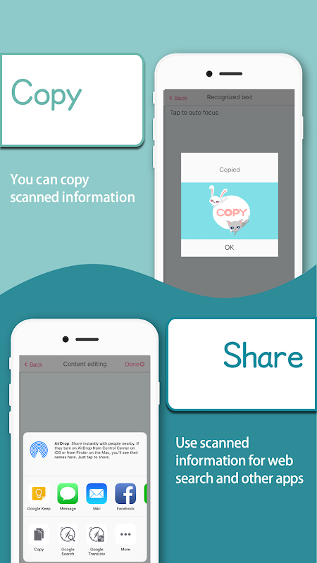 * You can save the recognized text by sharing to Evernote and GoogleKeep.