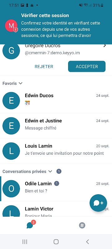 Alat pesan instan ini terintegrasi ke dalam solusi UC Anda dan akan memungkinkan semua pengguna untuk berkomunikasi dengan aman: solusi tersebut dioperasikan dan dihosting di Prancis.