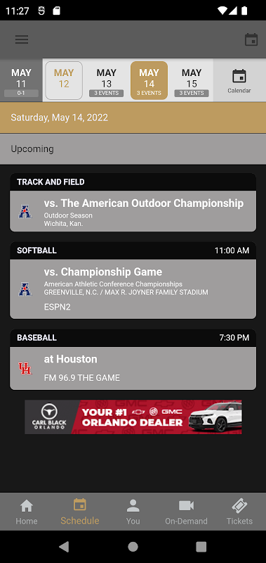 Aplikasi atletik resmi Universitas Central Florida adalah suatu keharusan bagi penggemar yang pergi ke kampus atau mengikuti Ksatria dari jauh. Dengan media sosial interaktif, dan semua skor serta statistik seputar permainan, aplikasi UCF mencakup semuanya!