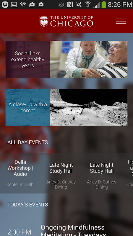 Transport yourself to the University of Chicago with the UChicago mobile suite. Get instant access to news and events. Find your way around with maps and transit. Watch the latest UChicago YouTube videos. Look up people in our online directory. Get personalized content through myUChicago.