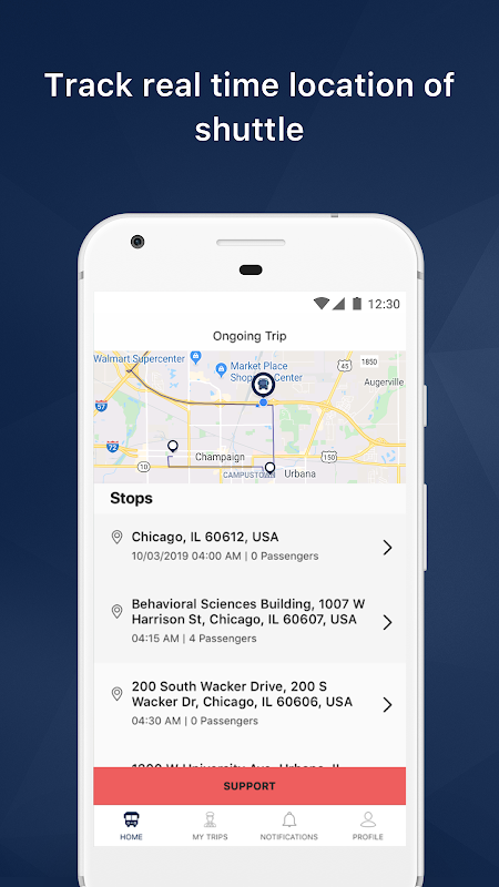 Aplikasi UI Ride memungkinkan fakultas / staf dan mahasiswa University of Illinois untuk memesan wahana tentang layanan UI Ride yang dioperasikan oleh Fasilitas dan Layanan. Saat ini layanan UI Ride tidak terbuka untuk umum.
