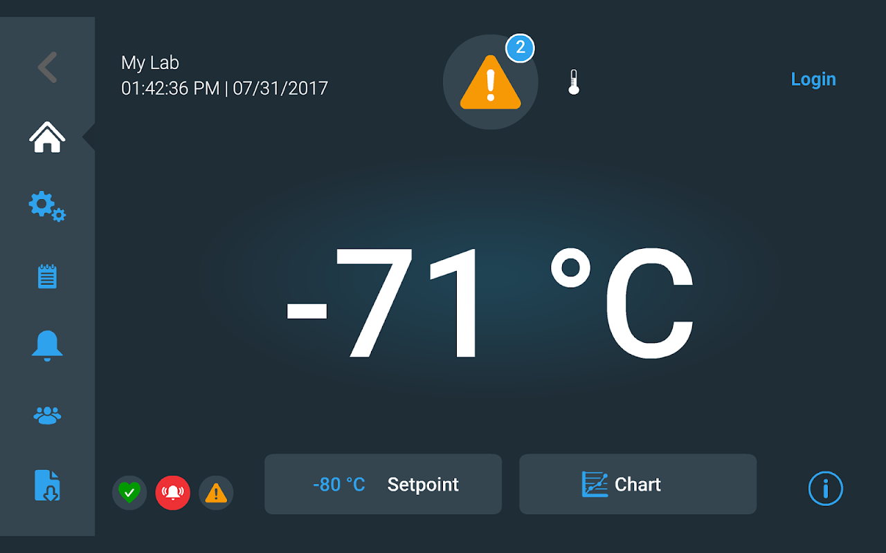 aplikasi simulator antarmuka ULT untuk menampilkan suhu freezer ultra-rendah
