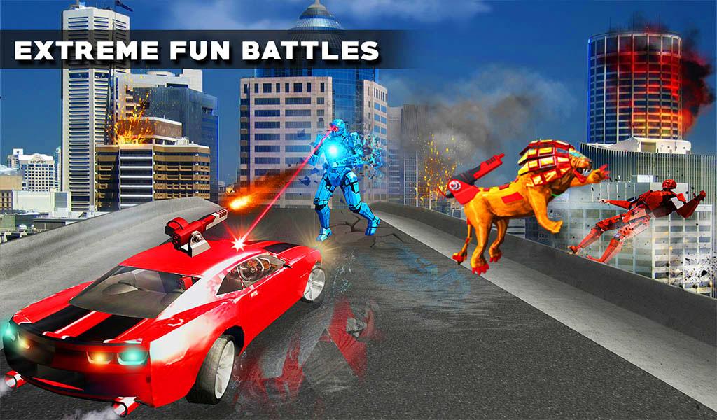 Anda pasti akan menyukai pertempuran robot kota futuristik 2019 perang ini karena permainan mobil robot simulator singa dan mobil mengubah game robot dengan simulator mengemudi robot ekstrim 2019 dan simulator robot hewan liar.