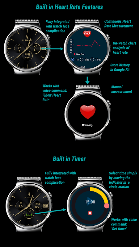 & # 10004; Aplikasi Heart Rate built-in dengan pengukuran denyut jantung terus menerus dan analisis grafik on-watch dari denyut jantung + integrasi penuh untuk komplikasi detak jantung pada tampilan jam.