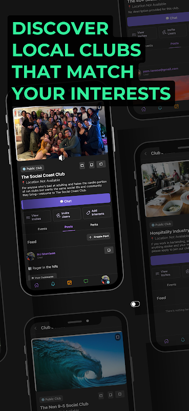 - Pengalaman Pengguna yang Sederhana: Antarmuka mode gelap yang ramping membuat pencarian dan bergabung dengan klub menjadi intuitif dan menyenangkan.