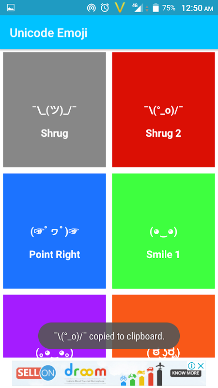 Unicode Emoji is a small app which consists of various expression faces like Unicode, ASCII, Emoticon, Emojis, etc.