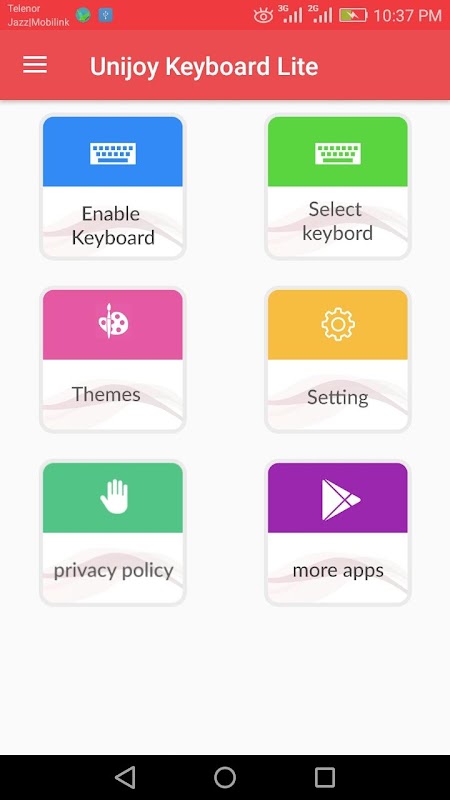 Brand new Unijoy language keyboard Lite is designed with your favourite, beautiful and amazing themes.You can select your best choice from multiple themes. Select the theme which suit you