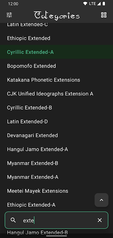 Aplikasi sederhana dan modern untuk menelusuri semua karakter Unicode!